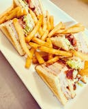 Fried haddock, scallops and shrimp served over french fries with cocktail and tartar sauce. Comes with a small salad and garlic bread